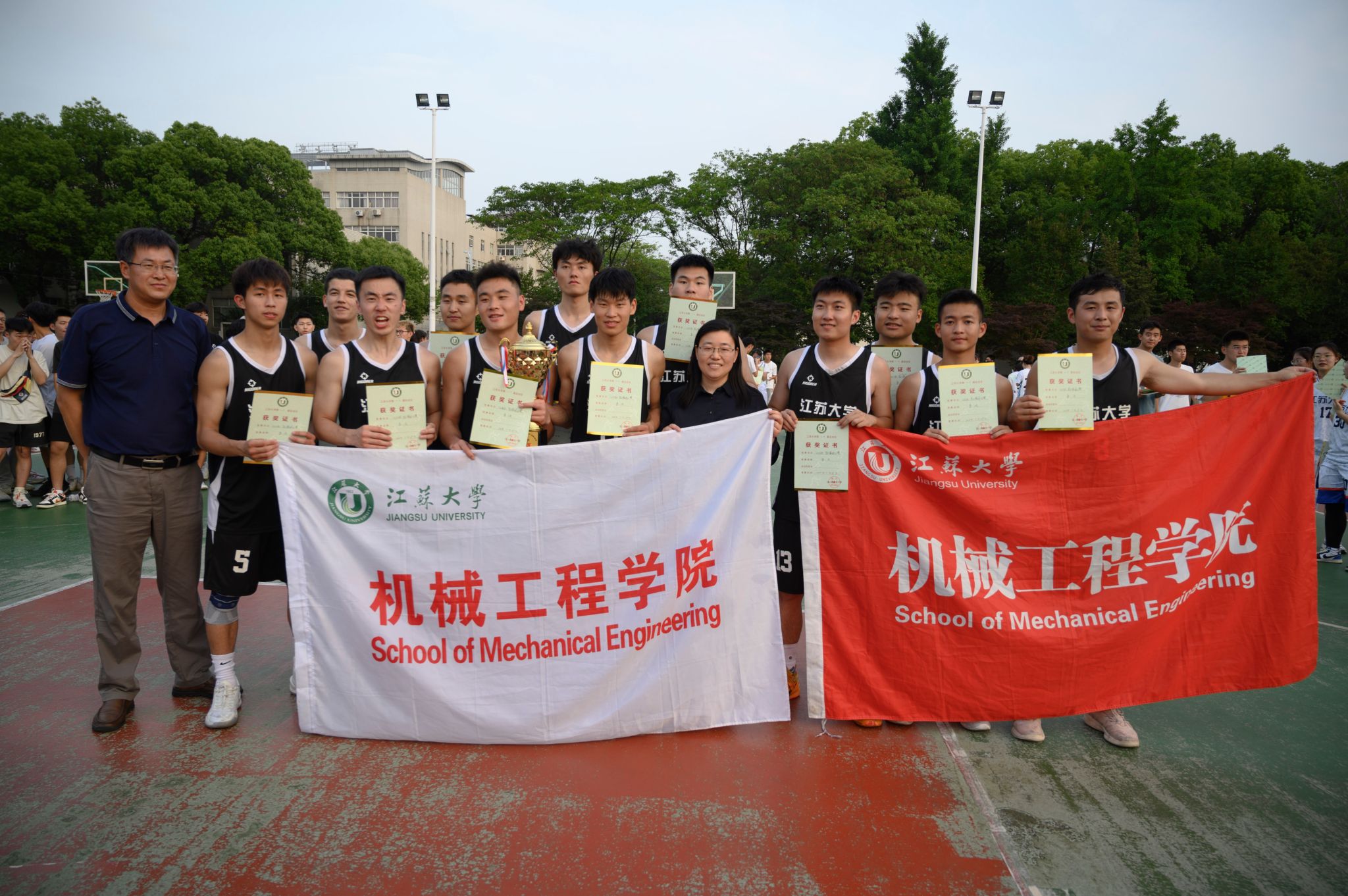 On May 29, the "Jiangda Cup" men's basketball final of the 20th Games was staged in Xishan basketball court of Jiangsu University, attracting many teachers and students to stop and watch the game. Athletes abide by the rules, cooperate in unity and strive hard; the referees perform their duties conscientiously and impartially. The score of the game was exciting . There was a great deal of cheering and applause on the scene.